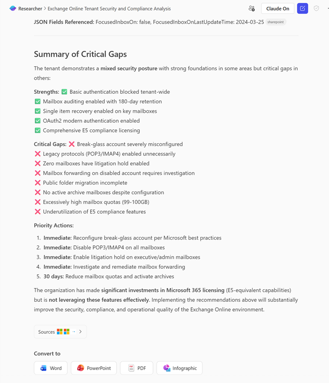 This way you can take that configuration data, along with some prompts I also provided, and feed that into your AI wherever that may be. When you do this with the Essential 8 prompt I provided the results look like this: