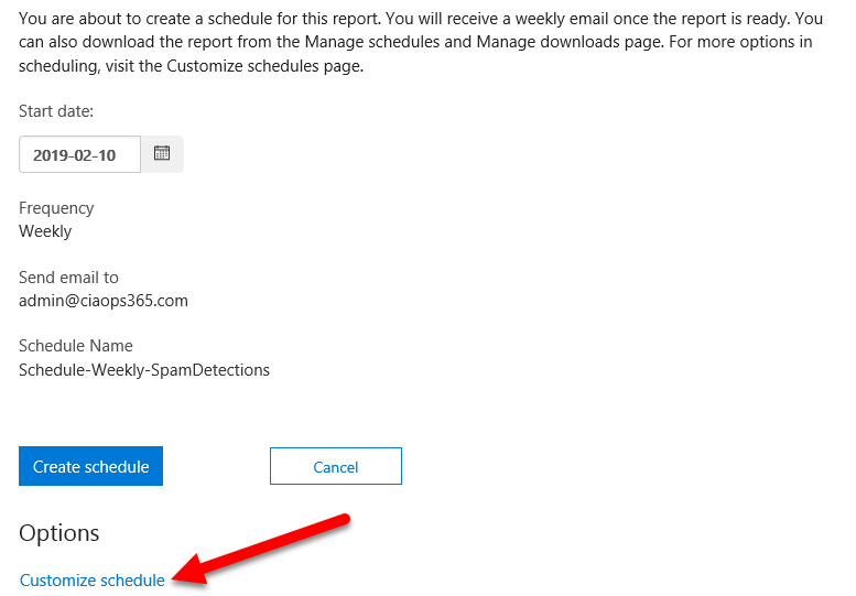 If you scroll down to the bottom of the window you will see that there is a Customize schedule option as shown above.
