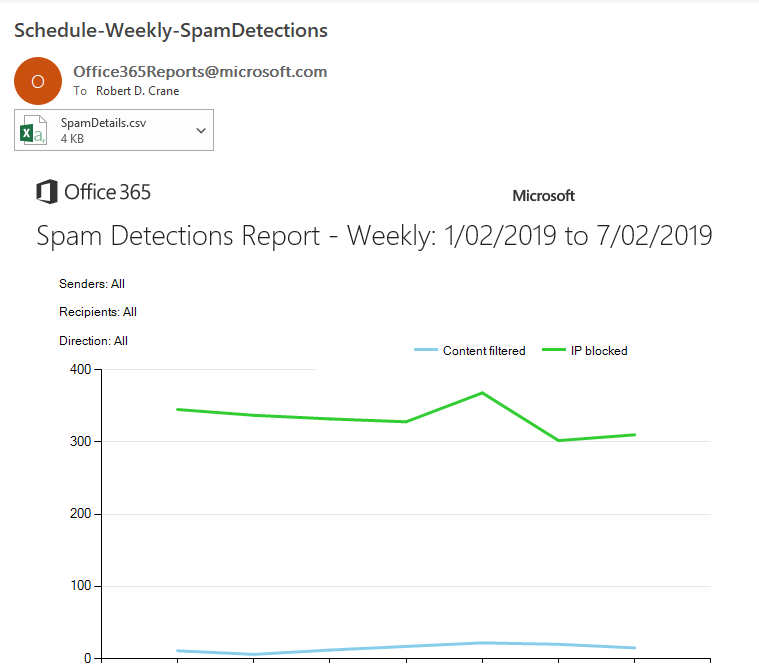 Once you have saved your schedule, you will then receive a regular email like that show above with the report you configured. You’ll note that there is also a CSV file attached that you can use for further analysis.