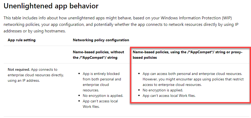 from Unenlightended and enlightended app behavior while using Windows Information Protection (WIP).