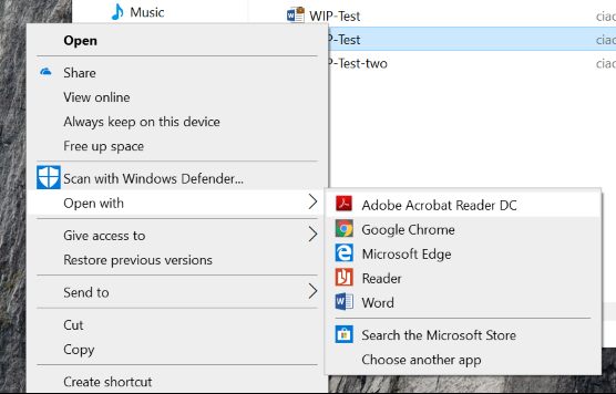 Let’s say that I now want to open the business PDF file with Adobe Acrobat Reader.