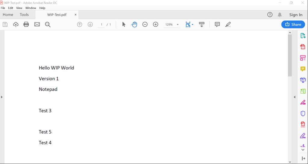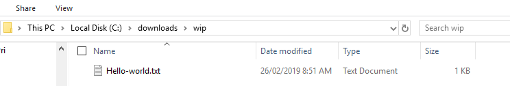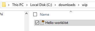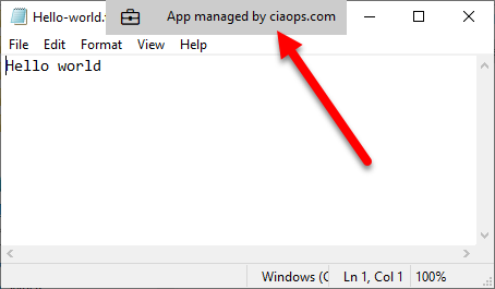 So how does this all work in practice? As an example, I created a new data file on the local Windows 10 device subject to the App Protection policy. This file is currently considered a personal file because it doesn’t have the briefcase graphic in the file icon.