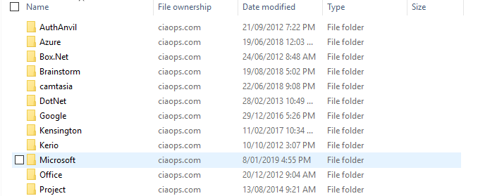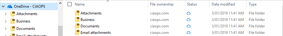Here you will notice that all the OneDrive for Business files have been classified as corporate data as noted by the briefcase graphic in the file type icon. You will also note a new column as well – File ownership, which contains the domain you configured.