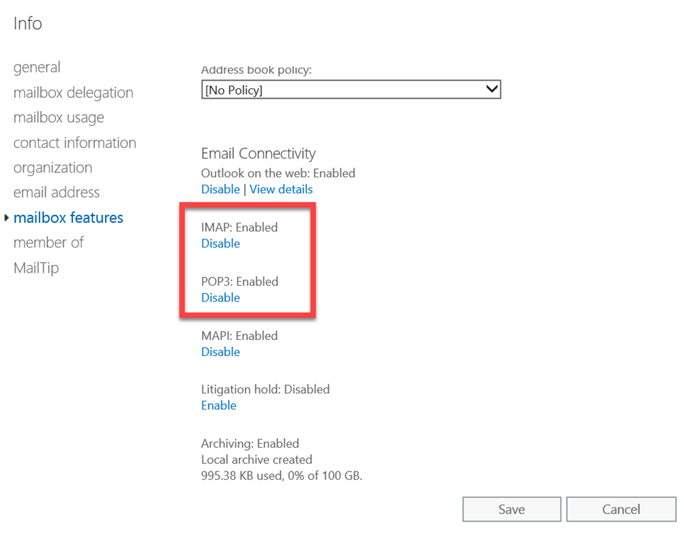 So, by default, when you create a shared mailbox you are actually creating an account with a system password in your environment. No so bad you think right? Well, the problem is that, by default, IMAP and POP3 are enabled on all mailboxes, including shared ones.