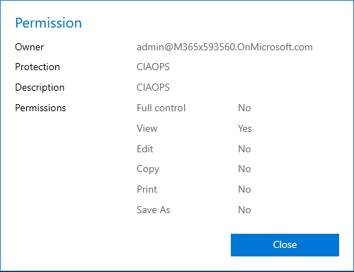 Azure Information Protection basically allows you to apply unique permissions to an individual document. This ensures that the permissions travel with, and are obeyed, no matter where or to whom the document is sent. That is a very powerful way to protection your information and as you can see, once you have configured the label it is very easy to apply to any document directly using Windows Explorer.