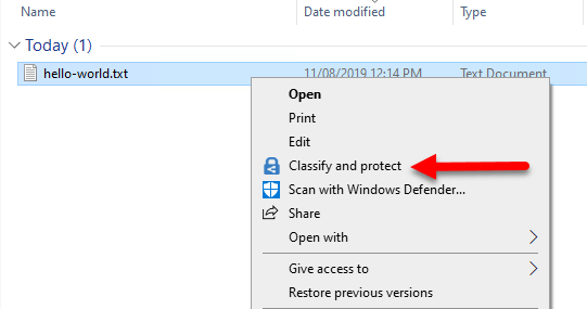You typically use this Windows Explorer extension when you want to protect non-Office documents. You do this by selecting Classify and Protect as shown above.