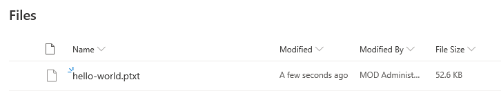That file can now be uploaded to OneDrive for Business and appears as shown.