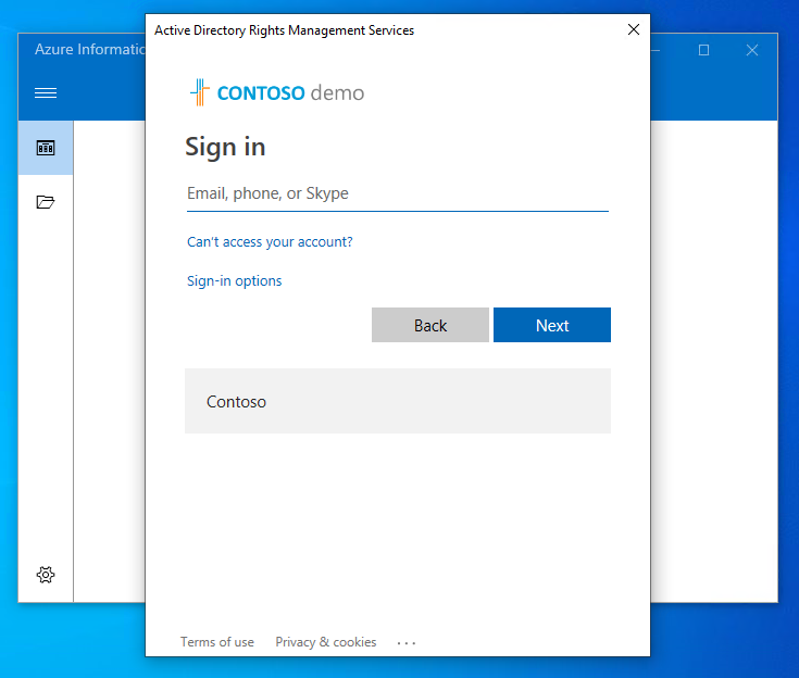 Because the document is protected the user will now be asked to enter their credentials as shown. This will be their email address.