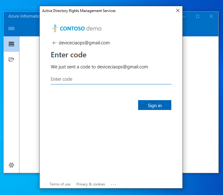 In this case, the email address with permissions is a Gmail account which isn’t an Azure AD account like say an Office 365 account. Access will therefore be granted in a very similar way to the way OneDrive for Business does it’s sharing. This means, that after entering a non-Azure AD account, the account will be sent a verification code that needs to be entered as shown above.