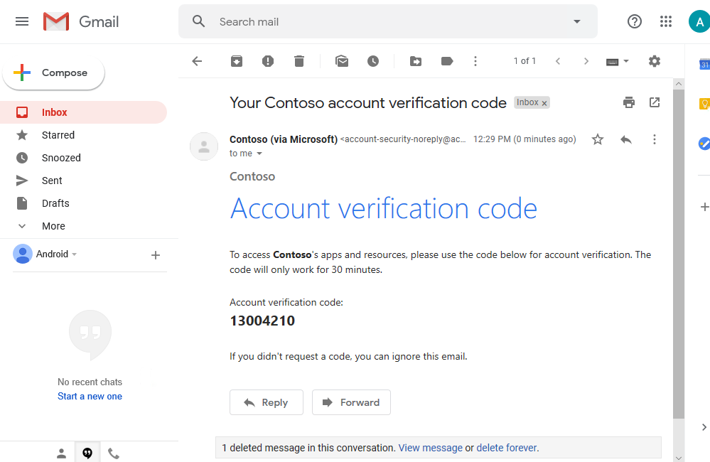 Checking back in the Gmail account, the user sees the Account verification code and enters that at the prompt. You’ll also notice that this code is good for 30 minutes. Access outside that will require re-authorisation and a new code.