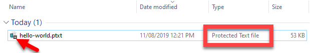 You should now see that the file is a “Protected Text File” and that it has a new icon. You will also notice that the extension here is now .PTXT for protected text file.