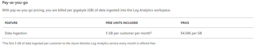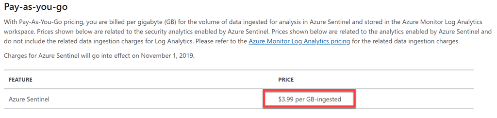 This means the Azure Sentinel cost to analyse all my data is AUD$3.99 per GB of data and