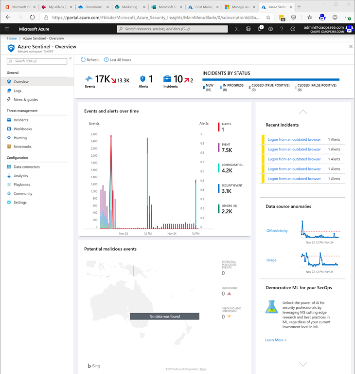 I now believe that the next ‘must have’ security add on you should integrate with your tenant is Azure Sentinel.
