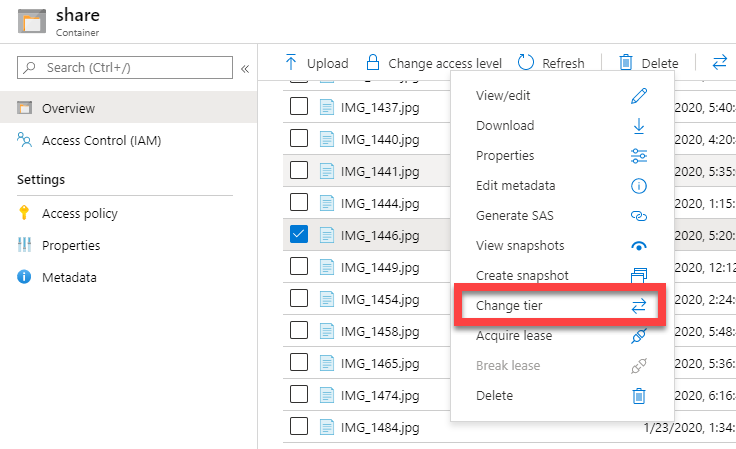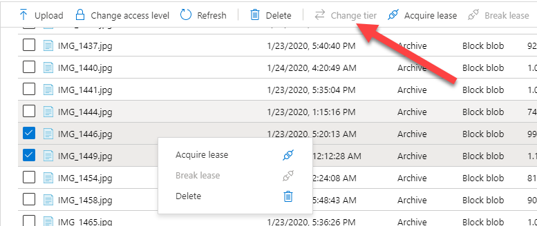 You’ll see that you now don’t get the option to set a tier any more once you have two items or more selected. The same happens with Azure Storage Explorer as well.