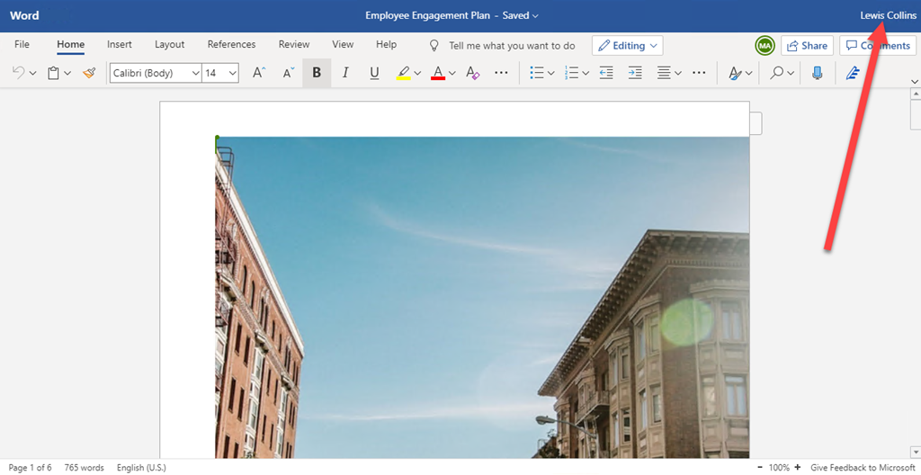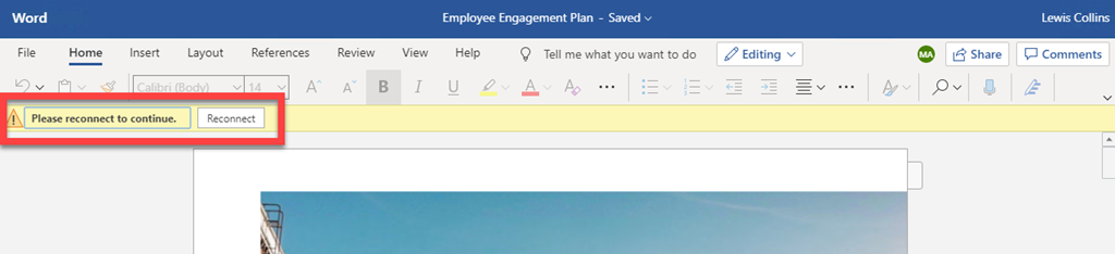Somewhere else, you can see that this user (Lewis Collins) has the document open to work on.