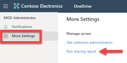 Now select More Settings on the left and Run sharing report from the options that appear on the right as shown above.