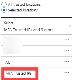 If you also look inside your Conditional Access configuration, you will now find that you also have a new Location called MFA Trusted IPs as shown above. You can thus use that as part of your Conditional Access policies if you wish which you can read more about here: