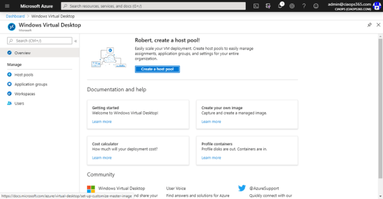 Open the Azure portal and navigate to Windows Virtual Desktop in your tenant and you should see the above screen.