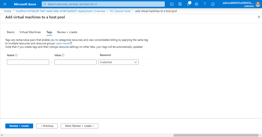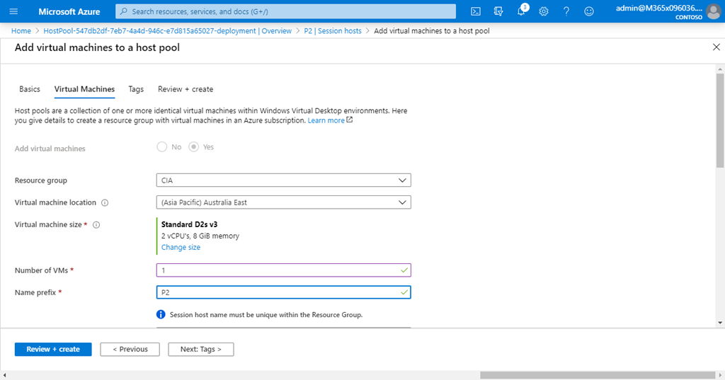 You’ll now be stepped through a host creation wizard. There generally won’t be anything you can change on this initial page, because the settings are determined already by the Host Pool. So, select the Next: Virtual Machines > button, at the bottom of the page, to continue.
