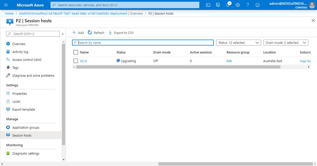 If you look at the hosts you just created in the Host Pool, you may see their status as Upgrading as shown above. This shouldn’t take long to complete.