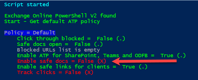 I was updating my security scripts for Office 365 ATP and when I ran it I noticed an option not set, which I highlight in red in my scripts to draw attention to it.