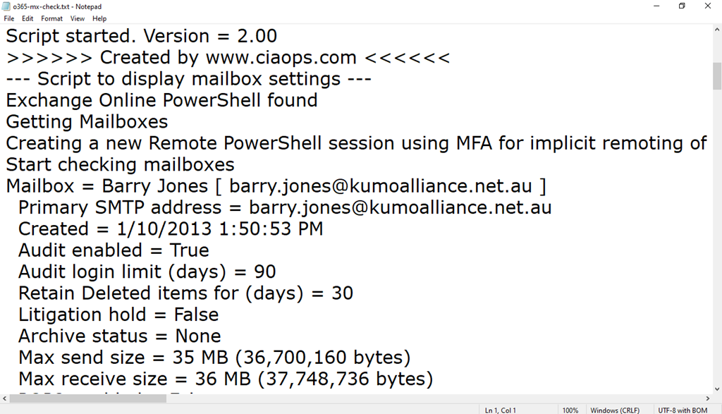 if you look the parent directory, from where the script ran, you will find the CSV file (o365-login-audit.csv) mentioned previously as well as the script log file (o365-login-audit.txt).