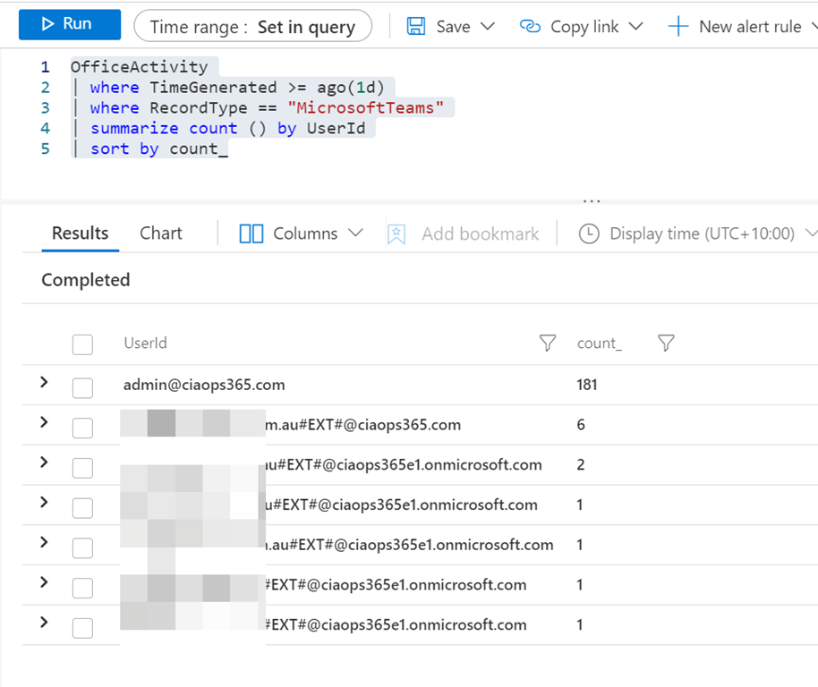 With Teams data now flowing into Sentinel you can start creating all sorts of interesting reports.