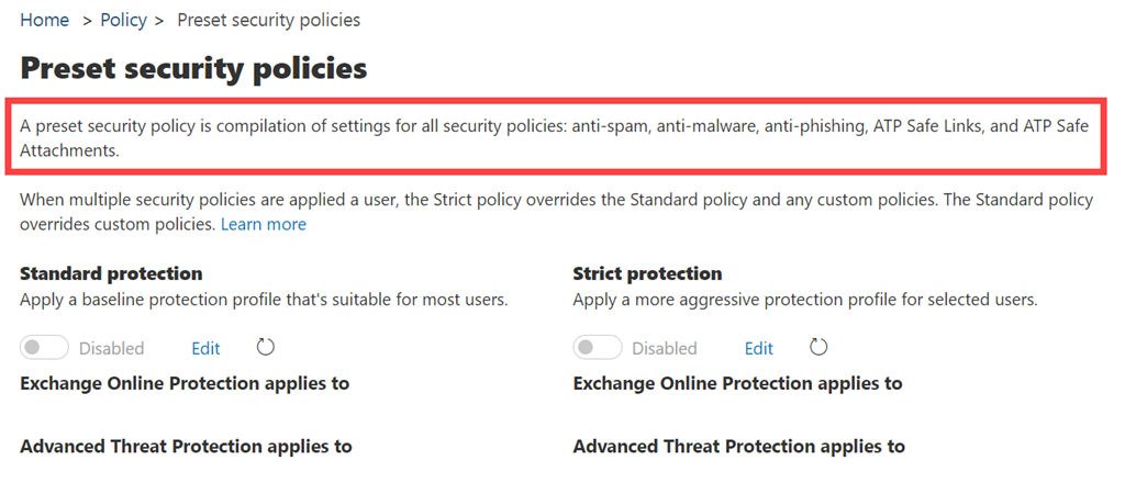 Preset security policies in EOP and Office 365 ATP