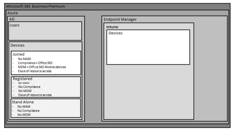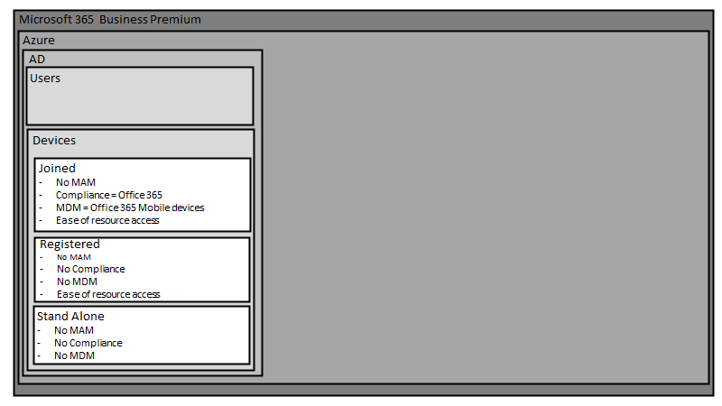 Note, MDM is for devices that are Azure AD joined and require full control of the device down to the operating system. This means the business has full control of the device. That may not be desired for users who bring their own devices (BYOD). Such devices can be managed by application management (MAM) which will be the focus of the next article.