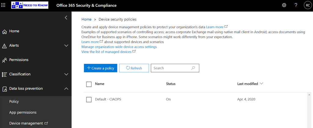 The main idea here is to configure appropriate checks via policies for each device operating system. Devices that fail these checks are considered and marked as ‘non-compliant’ and further action can then be taken. An example of an action that can be taken on a device that is ‘non-compliant’ is to exclude it from accessing Microsoft 365 information. A good example of this is a policy that prevents devices that have been jailbroken or have unsupported operating systems from being able to access corporate data.