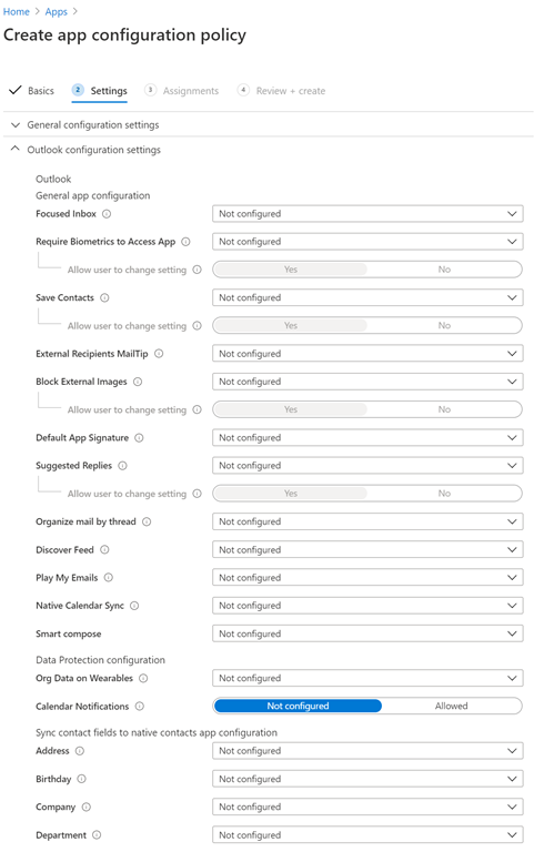 You then have Application Configuration policies as shown above which are also part of Intune MAM. These policies target the options you want configured for applications on devices.