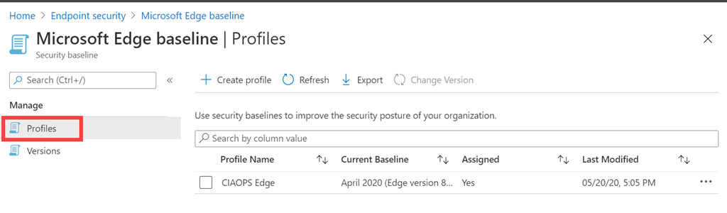 The idea is that Microsoft will publish a ‘best practices’ baseline, as shown above for Edge, and that you can create a policy or ‘profile’ as it is called here, from this to use across your environment just like any other policy we have already spoken about.