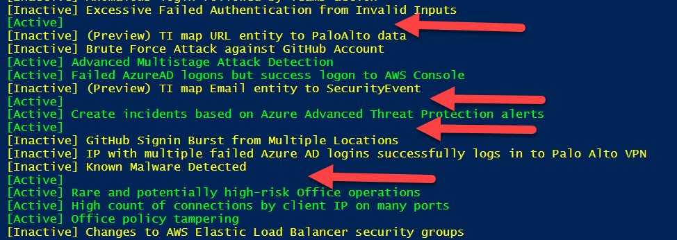The next section of the script output will show you all the available rules and whether they are in use or Active as shown above.