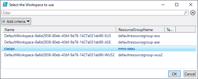 You’ll then be prompted to select which workspace Azure Sentinel is configured with. Again, just select the appropriate workspace and then OK to continue.