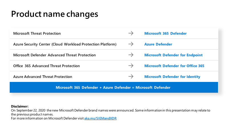 In contrast, here are the ‘Microsoft Defender’ products many of which have been re-branded lately: