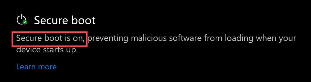 Finally, you can also open Windows Defender on your device, select Device Security and under the Secure boot option, shown above, you should see Secure boot is ON.