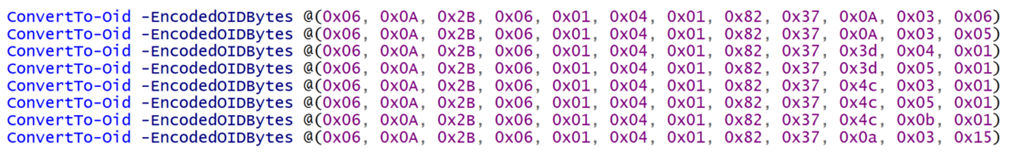 which you can use to convert. Now for reasons I can’t yet determine, you need to change the leading 01 to an 06. Thus, to view all the Object IDs using the PowerShell function above you can use the following code: