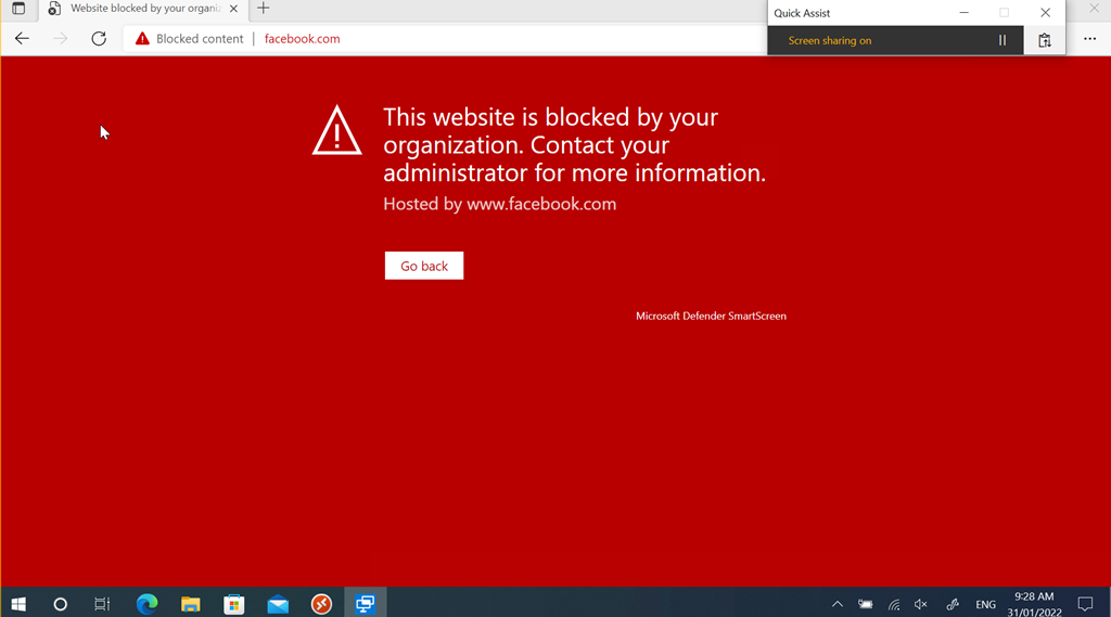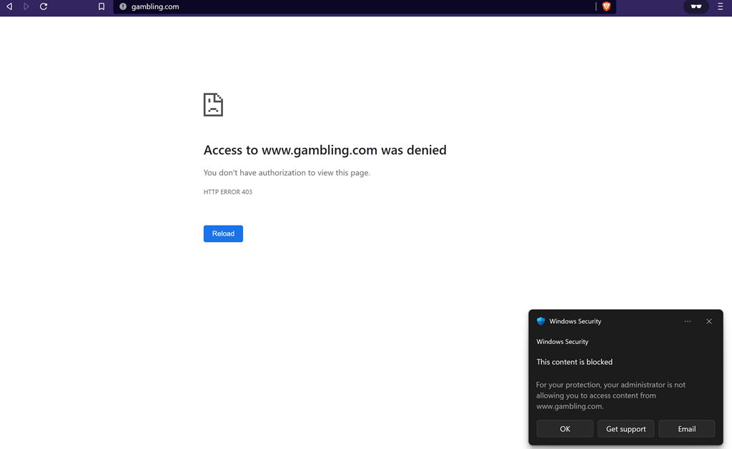 Enforced result on Edge. If you use third party browsers, and the site is encrypted (i.e. uses https) it will not be blocked as mentioned above.