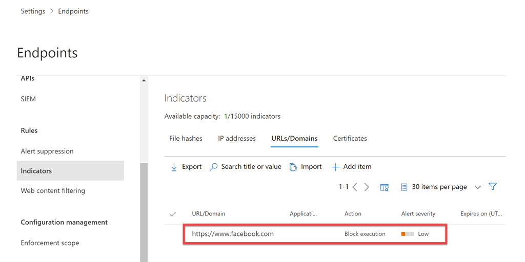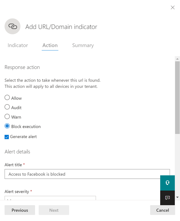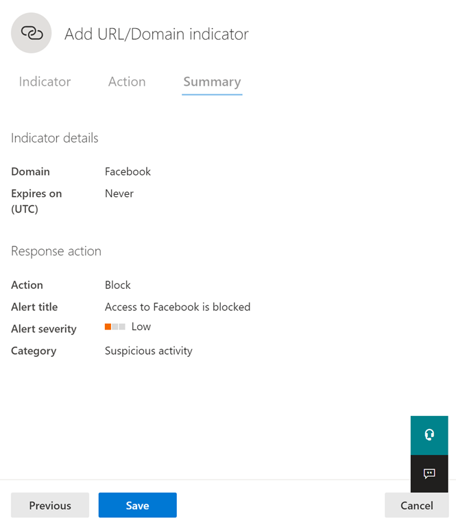 Remember, that you can use these indicators to not only block but also warn and audit if you wish. You can also have a number of different indicators and types. I’d also recommend you take a look at this article from Microsoft: