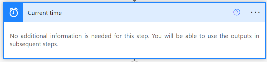 We now need our process to determine what the current date is and we can do this using the Current time action as shown above.