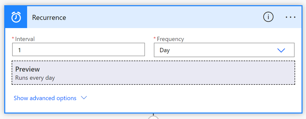 Create a new Flow and use the Recurrence action to trigger it as shown above. Select an appropriate time once a day when users will be prevented from accessing the tenant, say 9pm.