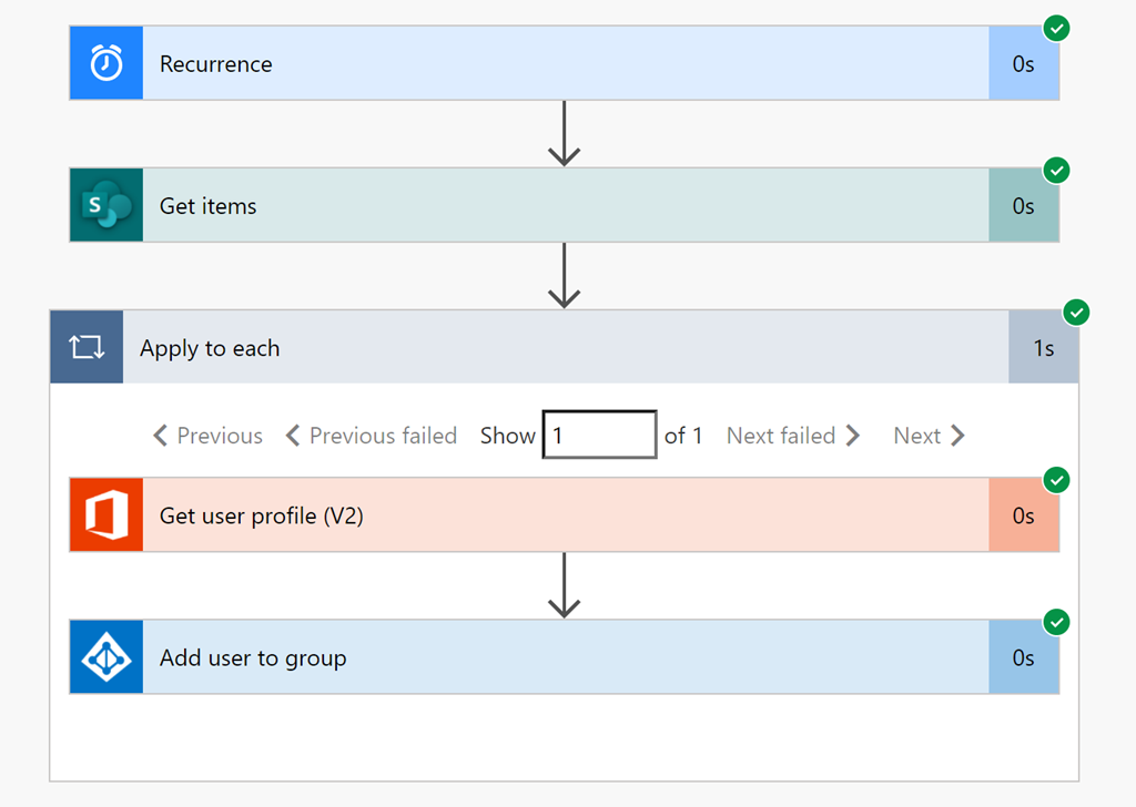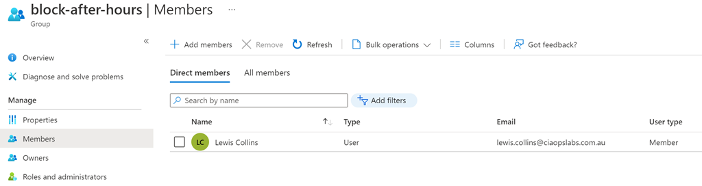 Once the Flow completes, the users in the list in SharePoint should now appear in the Azure AD security group as shown above.