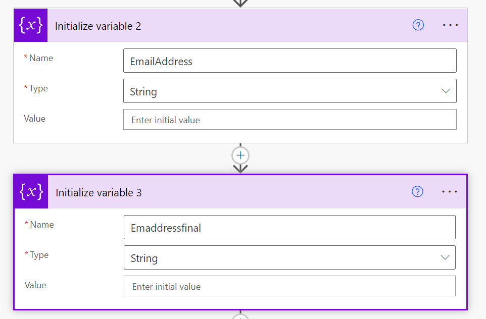 I need to extract and create a user email address before using it in the Search for users (V2) action. To do this I used two functions inside two Set variable actions. The first is: