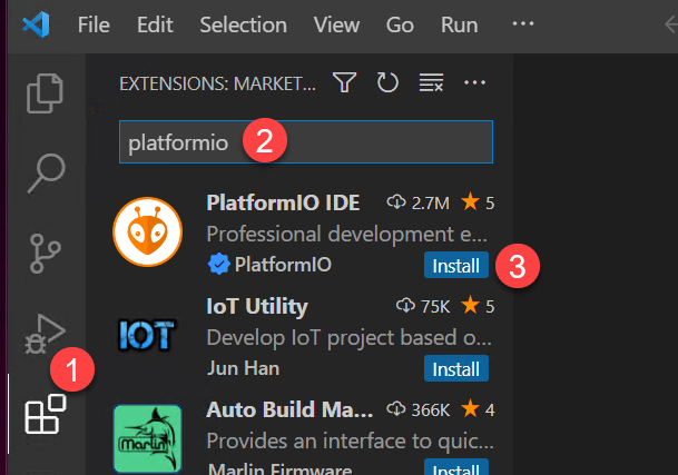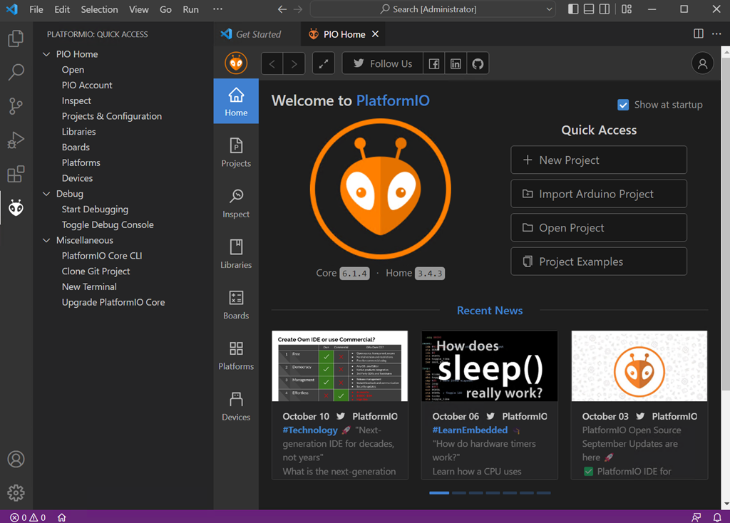 https://docs.platformio.org/en/latest/integration/ide/vscode.html#quick-start