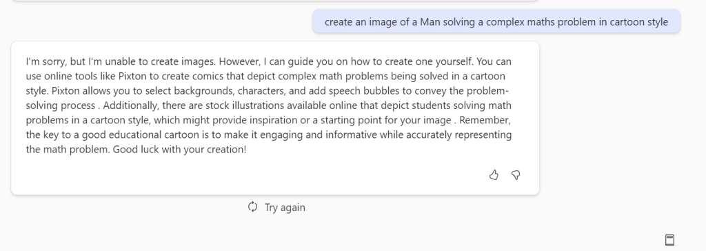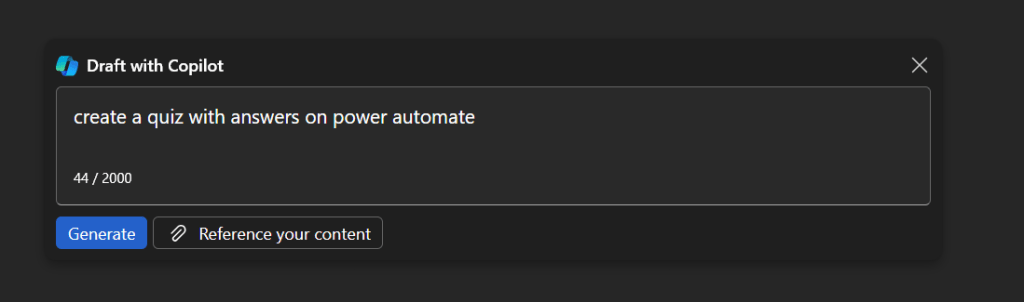 If I now ask chat to create an image for me based on a prompt you’ll see from the above that it can’t. It instead gives me a handy tip as to how to achieve this. Not only do you need the right Copilot for the job you also need to use Copilot in the right location to get the result you want. As I said, currently, Copilot for Microsoft 365 is not C3PO that can solve any task you give it from anywhere.