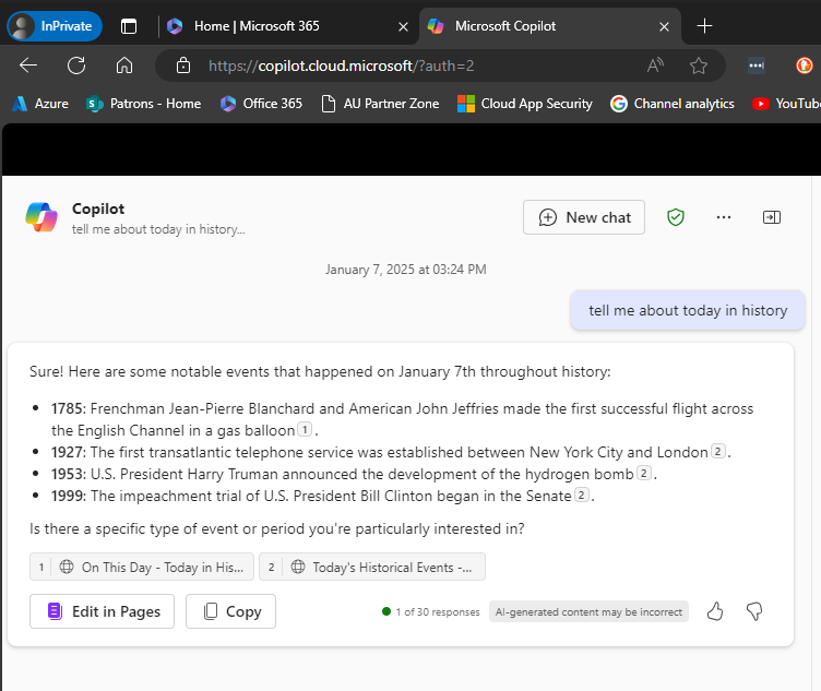 After all this testing, my advice would be, based on the tests I’ve run, that even if you don’t have a pad version of Copilot for Microsoft 365 in your environment you want the option to Pin Copilot to the navigation bar enabled as I detailed above. That should allow the Edit in Pages to always appear regardless of a paid version of Copilot being in the tenant or not and regardless of browser or browser session you use.