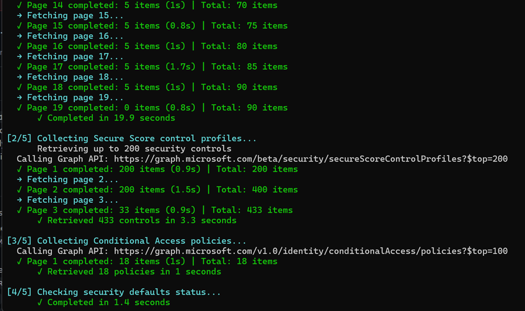 When run, you’ll see it extract the security from various places in the tenant as shown above.
