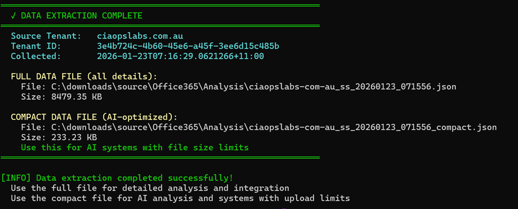 I have also created a number of additional scripts that extract as well as analyse a variety of other M365 services such as Exchange, SharePoint Entra Id and more. These are available to CIAOPS Patrons.