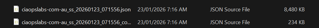 In this case you’ll see that I used the –compact option to two data files. The normal one, which is around 8MB and a smaller one around 234KB. The reason for this is that I found in my testing that many AI systems don’t support large file uploads (M365 Copilot does but). So the smaller one can work with those limited systems.