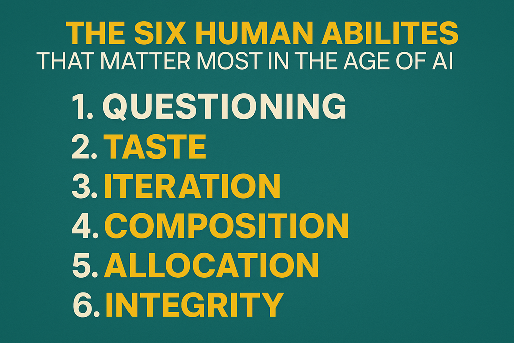 The future belongs to those who can question, curate, iterate, connect, prioritise, and act with integrity. Tools will come and go. These abilities compound.